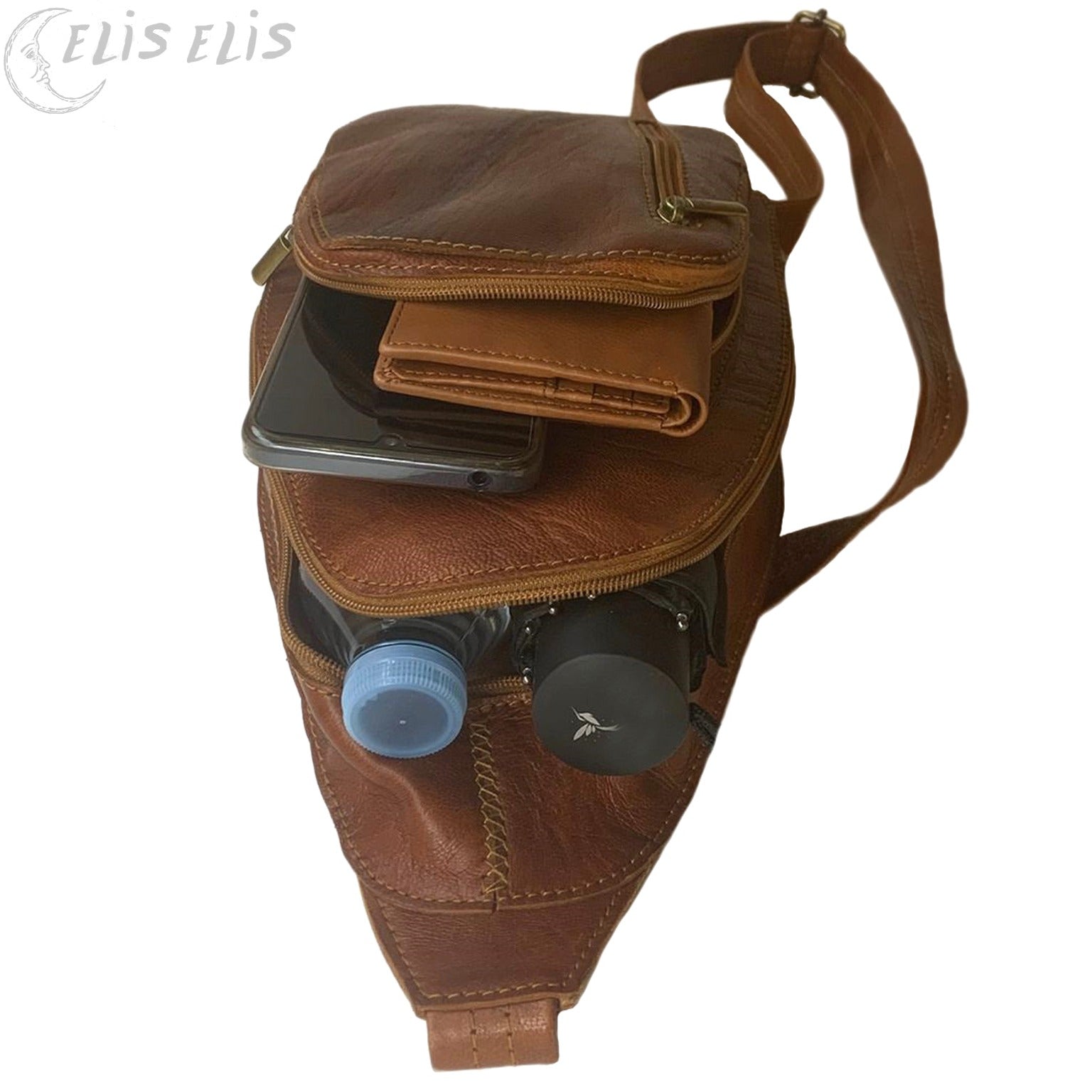 Bandolera de cuero genuino, resaltando su textura y carácter único. Cada pieza es diferente, con marcas propias del cuero que cuentan su historia. Su diseño con bolsillos multiusos con cremallera, le dan un toque más moderno, es perfecta para el día a día, viajes o trabajo.