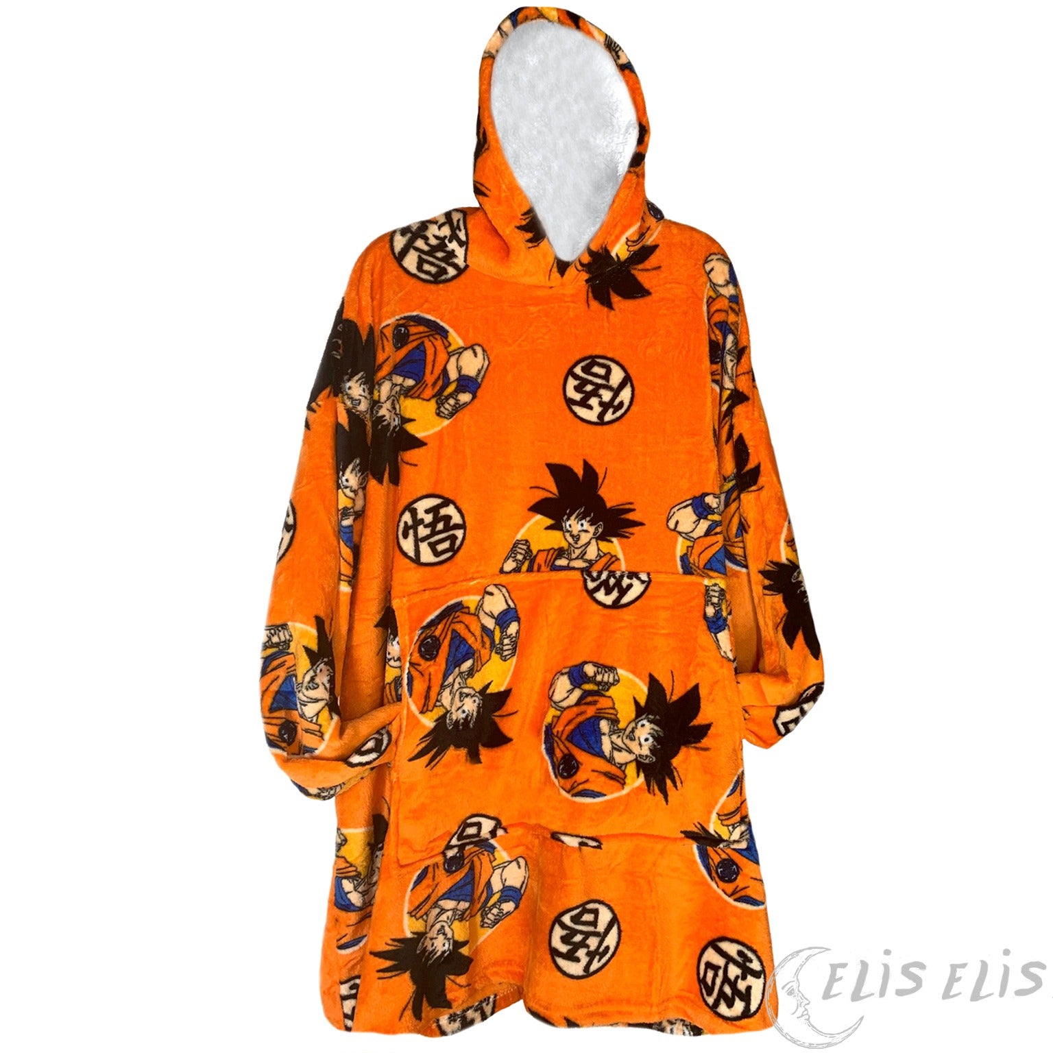 Esta bata manta oversize de talla "S" a la "3XL" es perfecta para fans de Dragon Ball que buscan comodidad y estilo. Su diseño naranja vibrante, inspirado en el icónico traje del protagonista, incluye ilustraciones del personaje y su símbolo característico, convirtiéndola en una prenda divertida, cálida y muy especial.