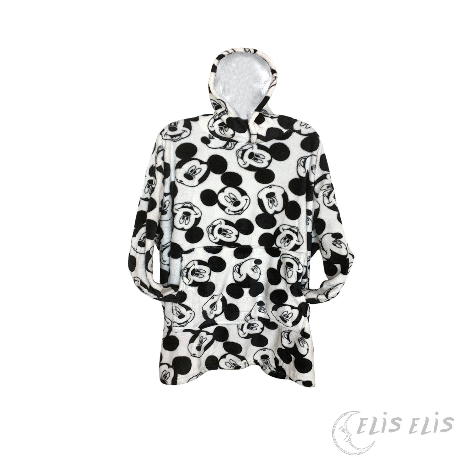 Esta bata manta junior oversize de talla "10 años" a talla "S" combina comodidad y estilo con un divertido diseño inspirado en el icónico personaje de Disney. Su estampado en blanco y negro con diferentes expresiones del personaje la convierte en una prenda única, moderna y perfecta para los más fans.