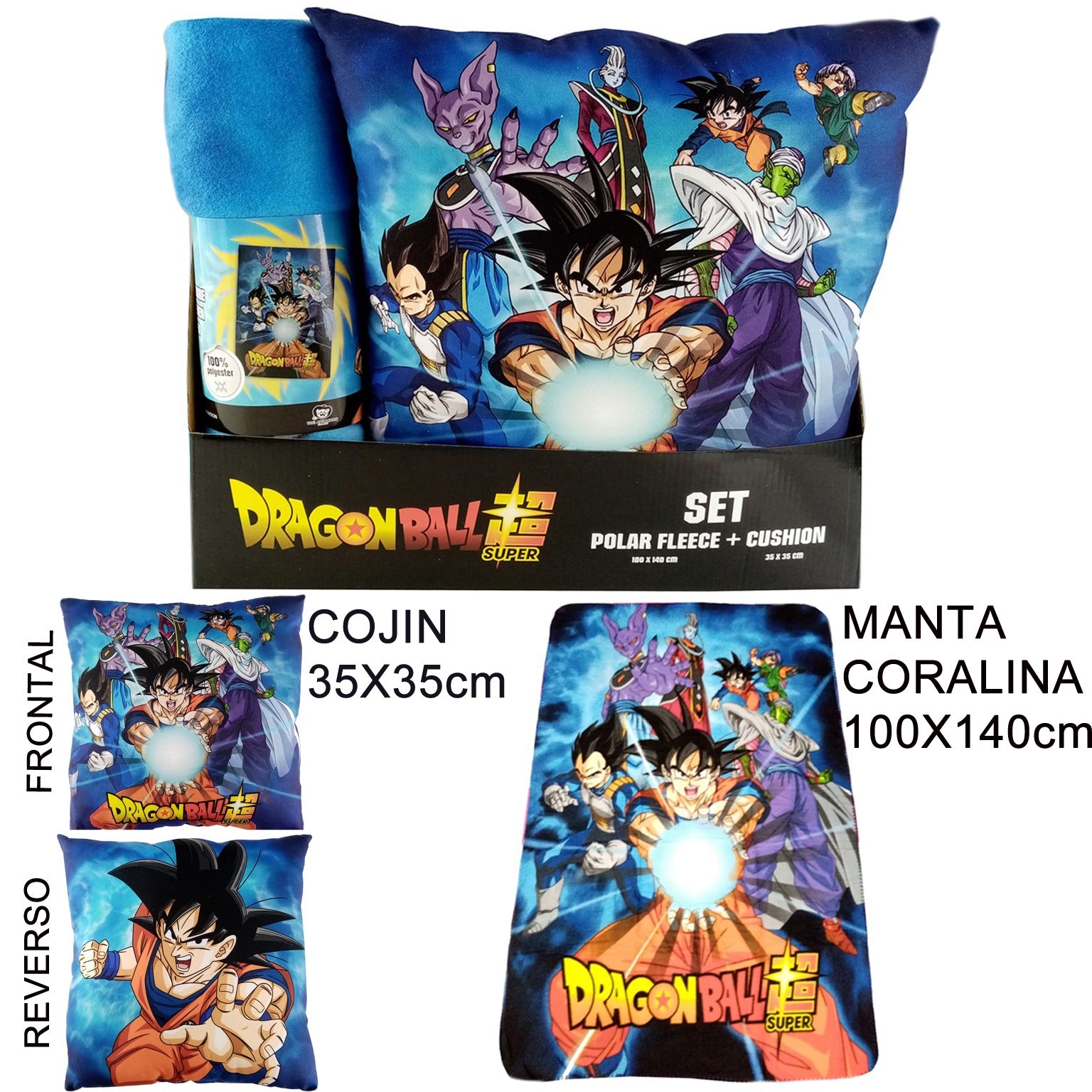Haz que tus momentos de descanso estén llenos de energía Saiyajin con este increíble set de cojín y manta Dragon Ball Super. Incluye un cojín suave de 35x35 cm con diseño por las dos caras y una manta coralina de 100x140 cm, perfecta para mantenerte abrigado mientras disfrutas de tu anime favorito.