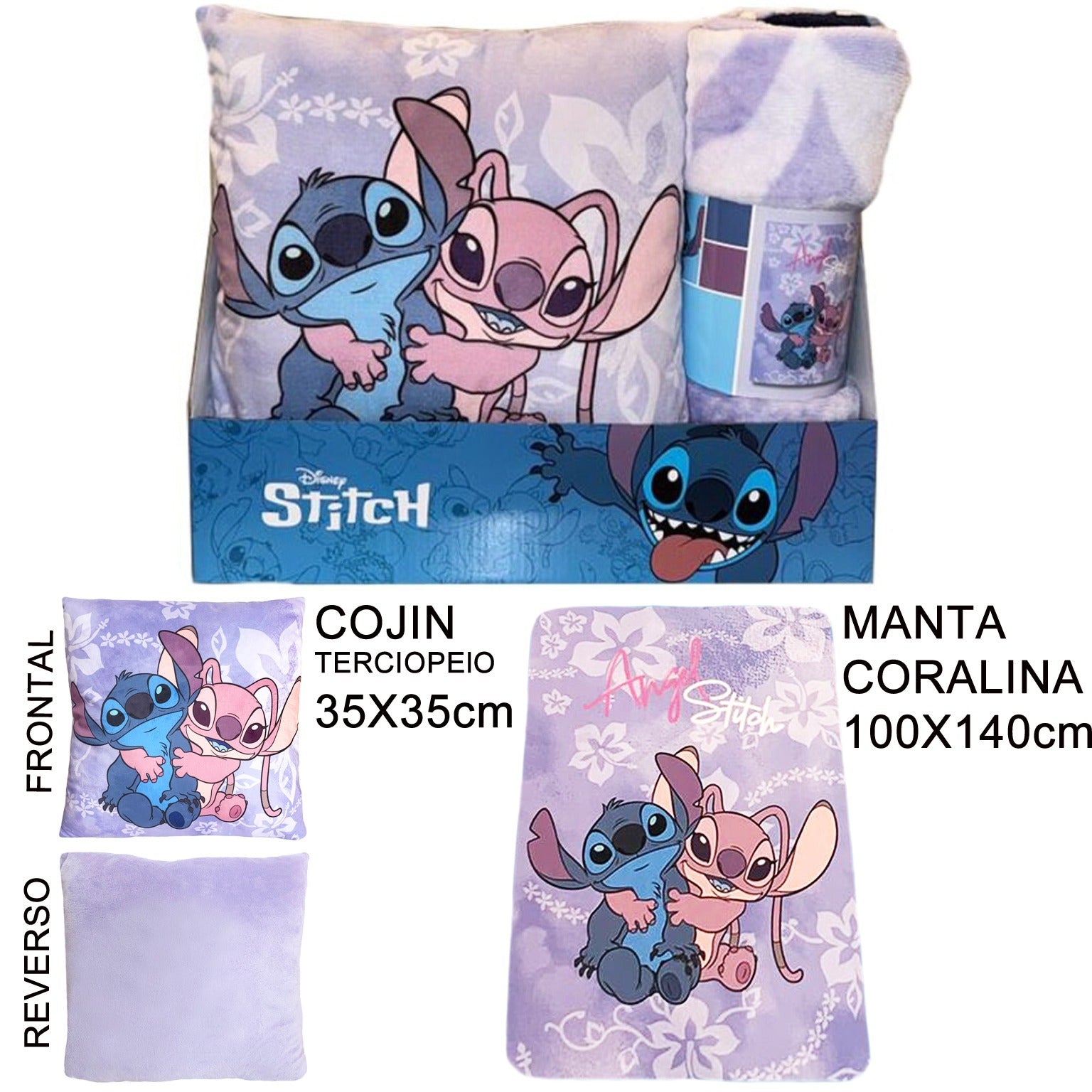 Dale un toque adorable y acogedor a cualquier espacio con este encantador set de manta y cojín de Stitch y Angel. Incluye un cojín de terciopelo suave (35×35 cm) y una manta coralina ultraligera y cálida (100×140 cm) con ilustraciones tiernas de los personajes.